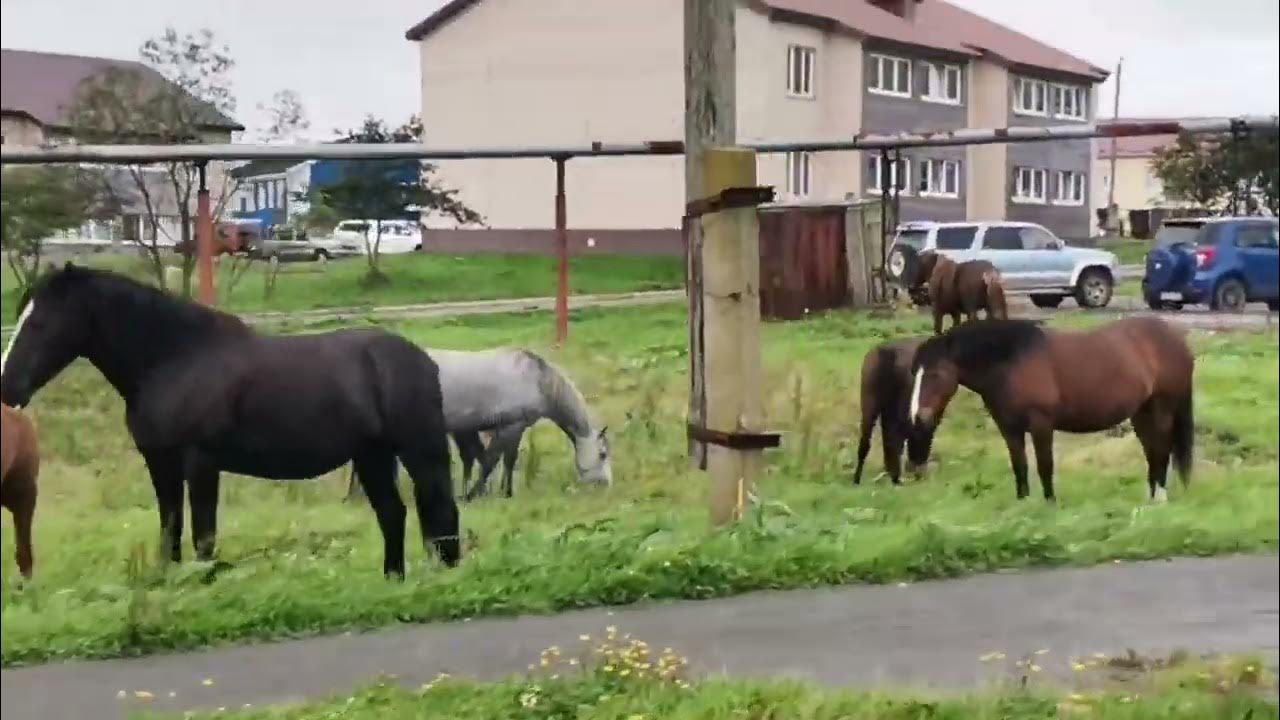 Не только коровы: дворы на Курилах оккупировали мустанги