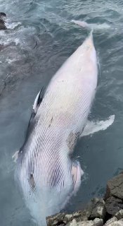 国後島・材木岩 海岸に小型クジラの死骸 ミンククジラか