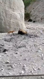 Недавно гости острова Итуруп засняли забавную картину на Белых скалах🦊Бесстрашная лиса хотела позабавиться над медведем,...