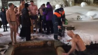 1月18日夜、択捉島クリリスク(紗那)郊外のバンナチカ温泉施設で神現祭(主の洗礼祭)の沐浴が行われた。クリル公現教会のロマン神父が祈りを唱え、湧き水を祝福した後、信徒たちは順番に氷水に飛び込んだ。警察官、ボランティア、そして市長が沐浴を監督...