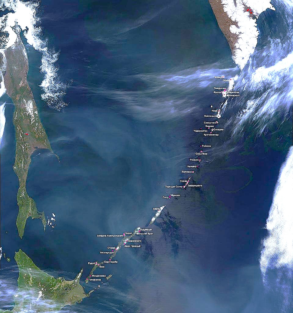 この群島はカムチャツカ半島から北海道まで連なる長い島々の列だ。サハリンから国後島、択捉島、色丹島などの南部の島々へ、あるいはカムチャツカ半島から北部の島々へアクセスできる。中央部の島々はアクセスが最も困難で、どちらのルートからも同様にアクセスが難しい。