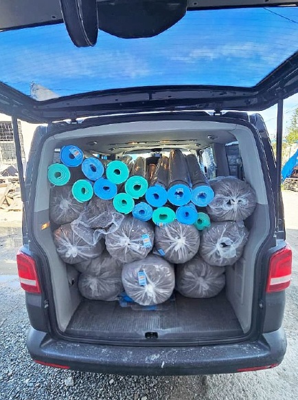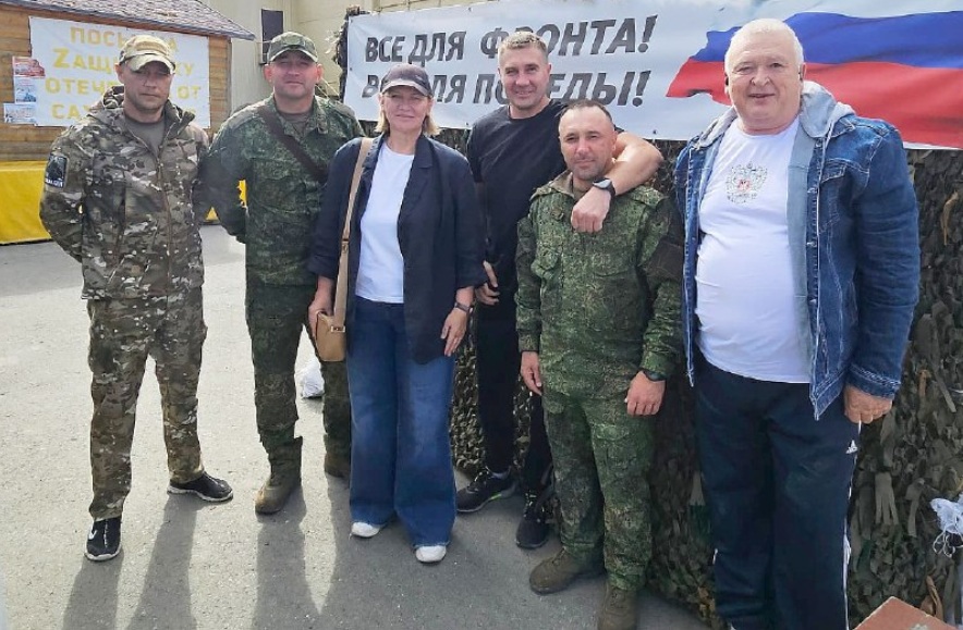 9月20日、ユジノサハリンスクにおいて、択捉島のロシア女性連合クリル支部長でありクリル地区議会議長でもあるタチアナ・ベロウソワ氏と、クリル地区行政府代表のエフゲニー・コノヴァロフ氏が、「シルバー」ボランティアが編んだ迷彩ネットや寝袋、特殊マット、対ドローン毛布といった野戦必需品をロシア軍に寄贈した。