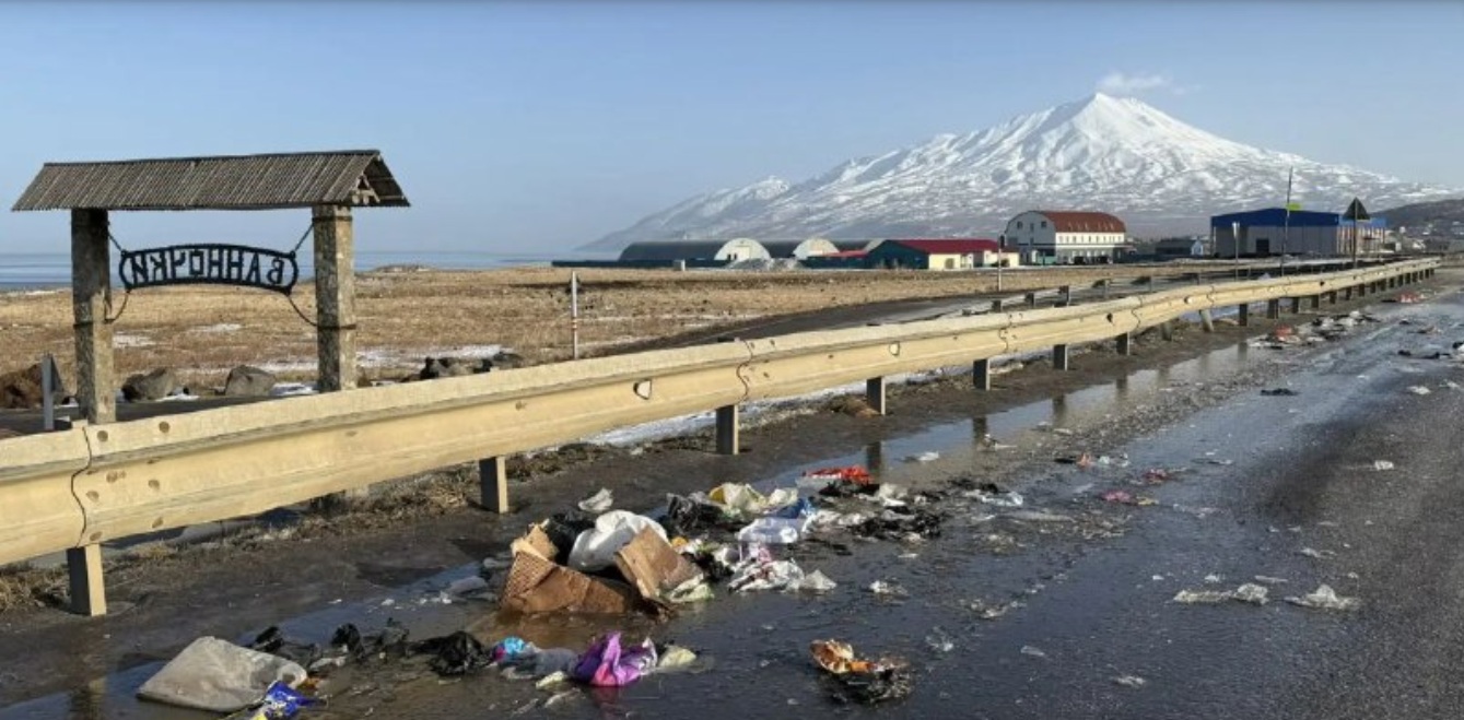 択捉島のシンボル散布山の絶景と「スノードロップ」 択捉島の話題 X Facebook はてブ Pocket LINE コピー 2026.02.25 択捉島のシンボル・ボクダン・フメリニツキー火山(散布山)の絶景と通称「スノードロップ」と呼ばれる違法に投棄されたゴミ–。美しい花とは違い、人間の「排泄物」は見た目が悪く、端的に言って気持ち悪い。ここは固形廃棄物の保管場所の跡地だ。毎年春になると出現する光景だが、「花束」が年々大きくなっている。そして残念ながら、島の廃棄物処理問題が解決されるまで、この状況は続くだろう。(択捉島の地元紙「赤い灯台」テレグラム2026/2/24)