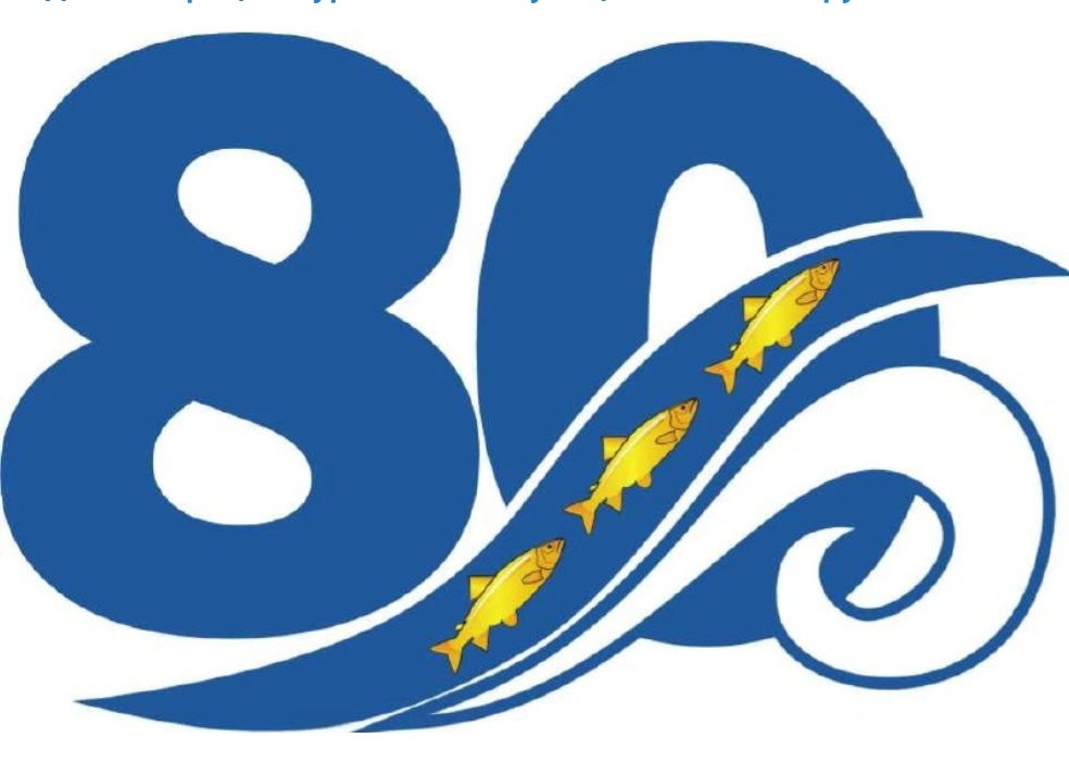 ヴィクトリア・ヴェドマコワ氏は「巨大で深みのある青色の数字『80』は、歴史的な節目を象徴しています。数字の一つは、雪のように白い波頭を持つダイナミックな海の波へと優雅に変化します。この波の流れの中に、まるで潮流に乗っているかのように、3匹の鮮やかな金色の魚がいます。これを通して、伝統の継続性、日付の持つ力、そして千島列島が特別な海洋の地であることを強調したかったのです」と、創作コンセプトを説明している。