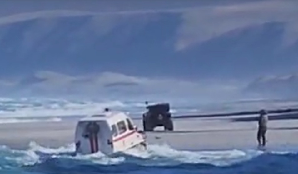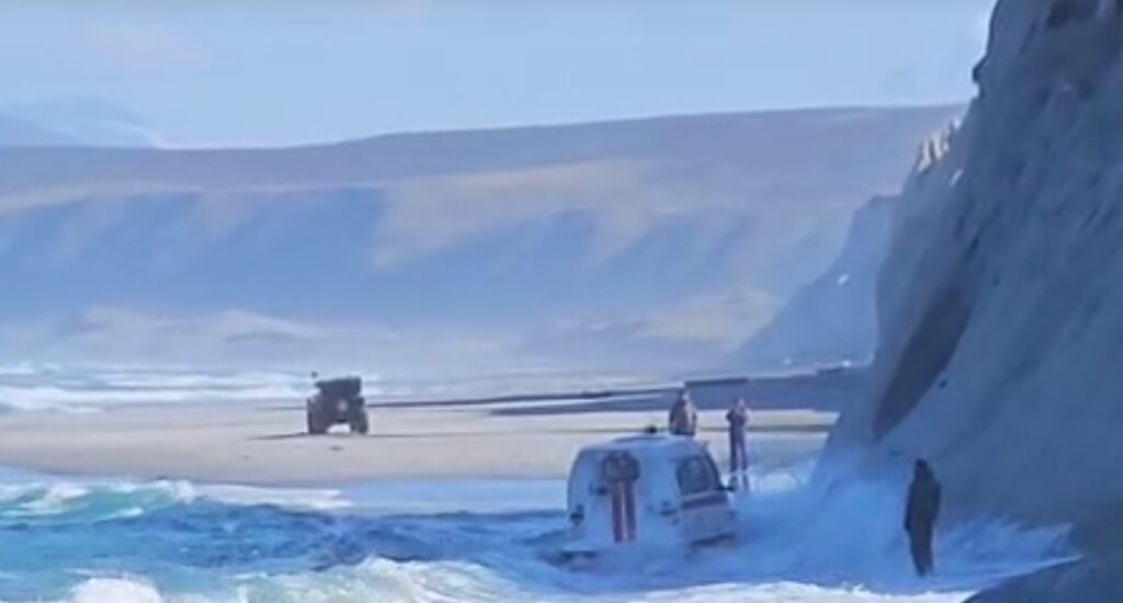 救助隊はホワイト・ロックス付近の海岸沿いを走行しようとしたが、荒波が計画を妨げた。悲劇的な結末になっていた可能性もあったが、そうはならなかった。この事態を救ったのは、車両の優れたクロスカントリー性能とドライバーの経験という二つの要因だった。動画が撮影された当時、海は嵐の後でほぼ凪いでいた。(sakh.online 2025/10/16)