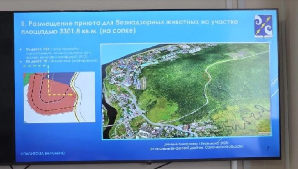 択捉島の新しい動物保護施設の移転先を協議する作業会議がクリリスク(紗那)の地区行政府で開催され、クリリスク北部の1カ所が建設地に決定した。会議には専門家だけでなく、関心を持つ市民も参加した。
