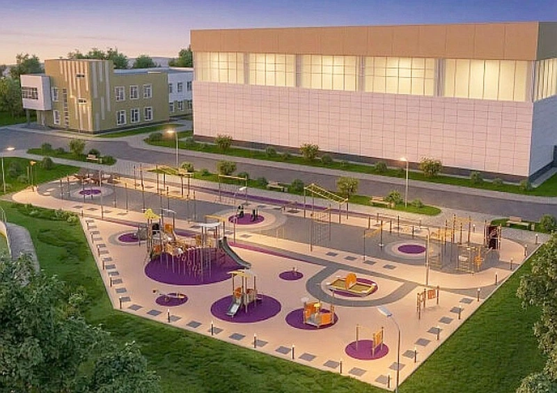 クリル地区行政府庁舎近くの敷地(クリリスク、クリリスク街道5/1)―フィットネス施設、フレックス社製子供用遊具、ゴム舗装、追加照明を設置。(択捉島の地元紙「赤い灯台」2026/4/26)