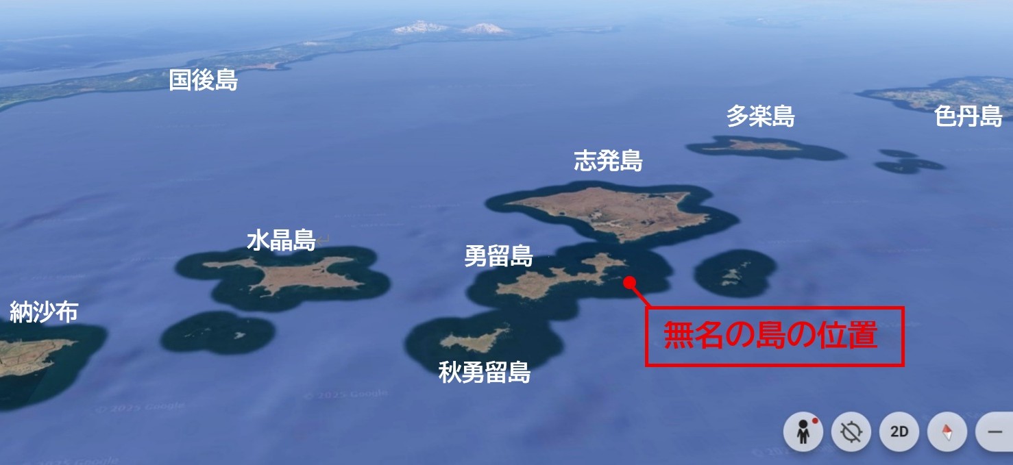 2つの無名の島は北方領土・歯舞群島の勇留島近く(astv.ru 2025/2/5)