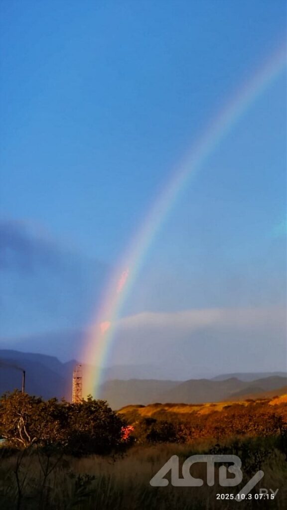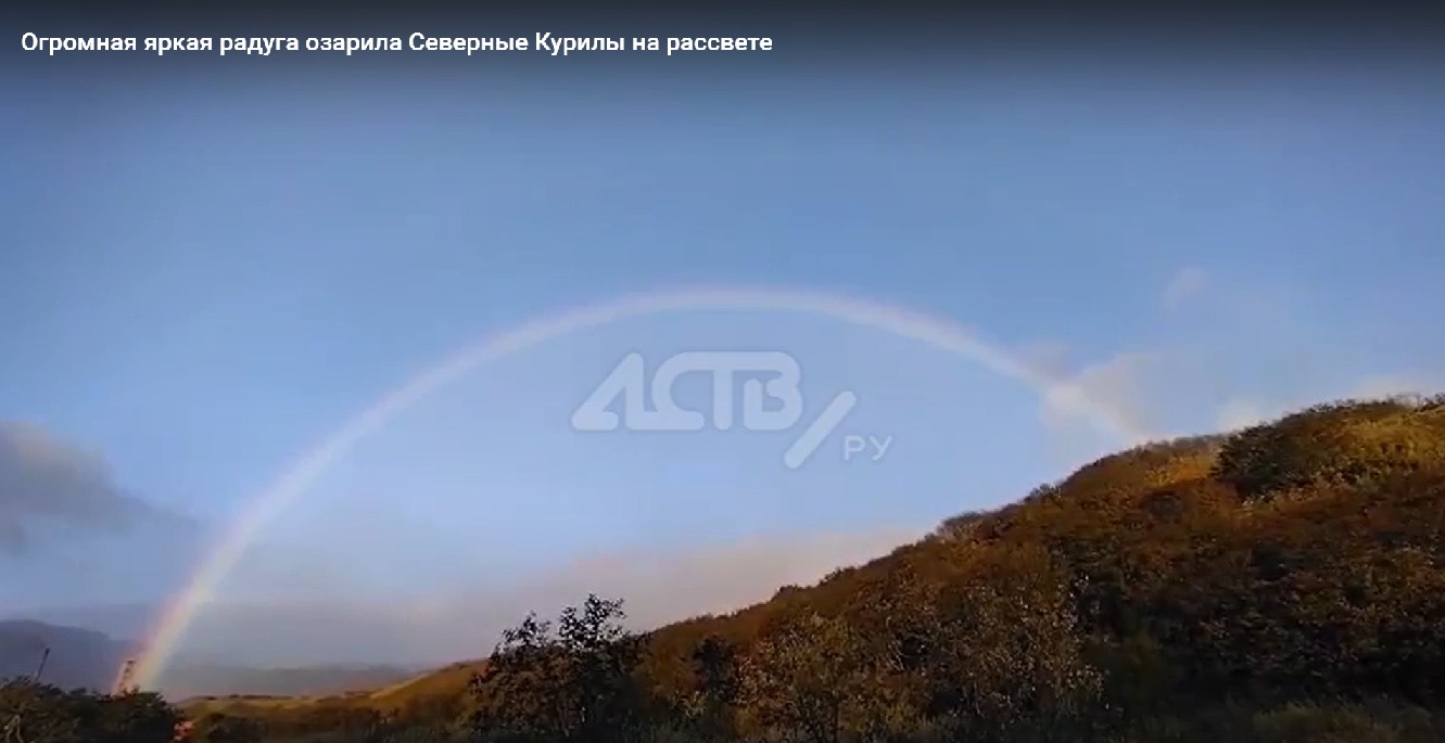 10月3日、北千島パラムシル島セベロクリリスクの夜明けを美しく大きな虹が照らした。映像は、地元在住のセルゲイ・ラコモフ氏によって共有された。(astv.ru 2025/10/3)