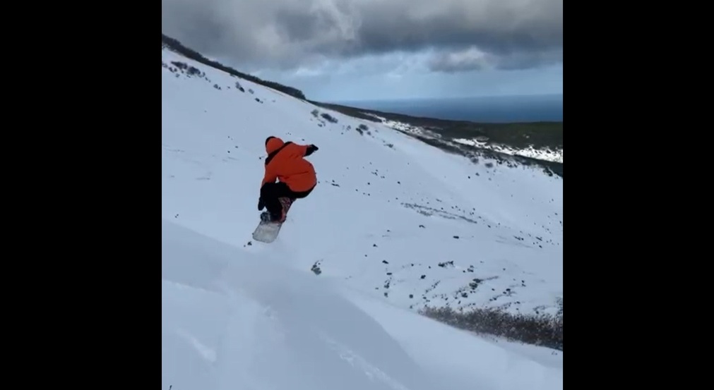 北千島パラムシル島 スノーボーダーたちが初滑り 千島列島 X Facebook はてブ Pocket LINE コピー 2025.10.17 サハリンの人々が秋のジャケットをクローゼットから取り出し始めた頃、北千島パラムシル島ではスノーボードシーズンが開幕した。「クリルバンド」チームのスノーボーダーたちは冬の到来を待ちきれず、初雪を体験するために山へと向かった。 スノーボーダーたちは手つかずの真っ白い斜面に最初の足跡を残していった。麓の秋の渓谷と水平線に広がる果てしない海との美しいコントラストを満喫した。(sakh.online 2025/10/16)