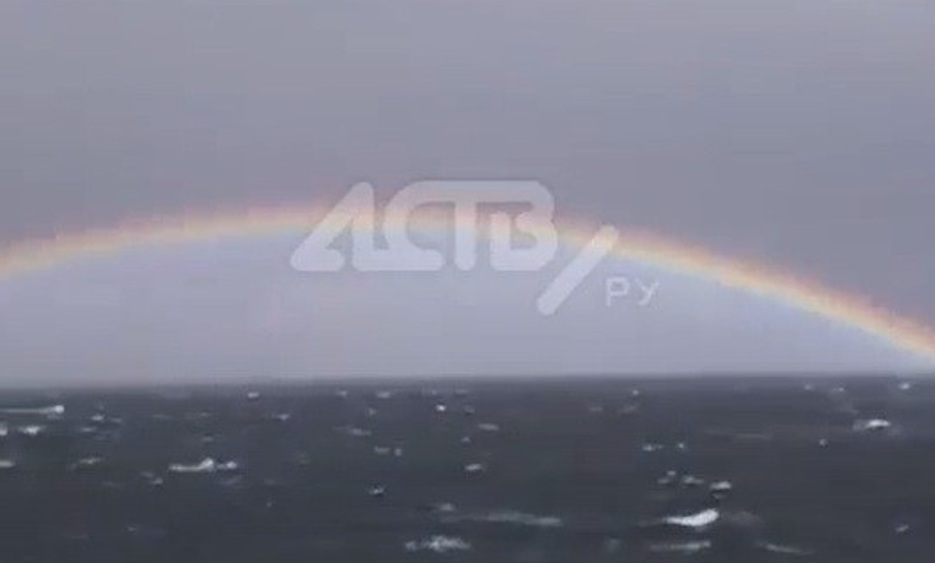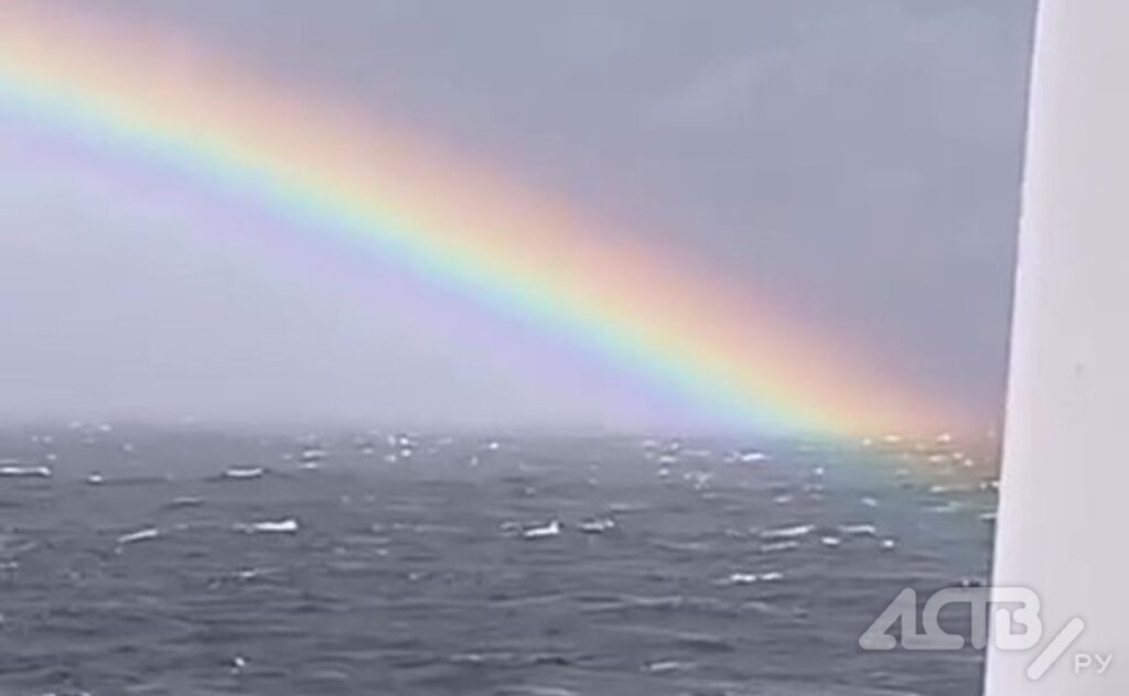 国後島沖で、ある船の乗組員が嵐の海にかかる幻想的な虹を撮影した。この巨大な虹は10月10日に現れたという。映像から判断すると、虹は明るさだけでなく、形も印象的で「二重」に見えた。(astv.ru 2025/10/12)