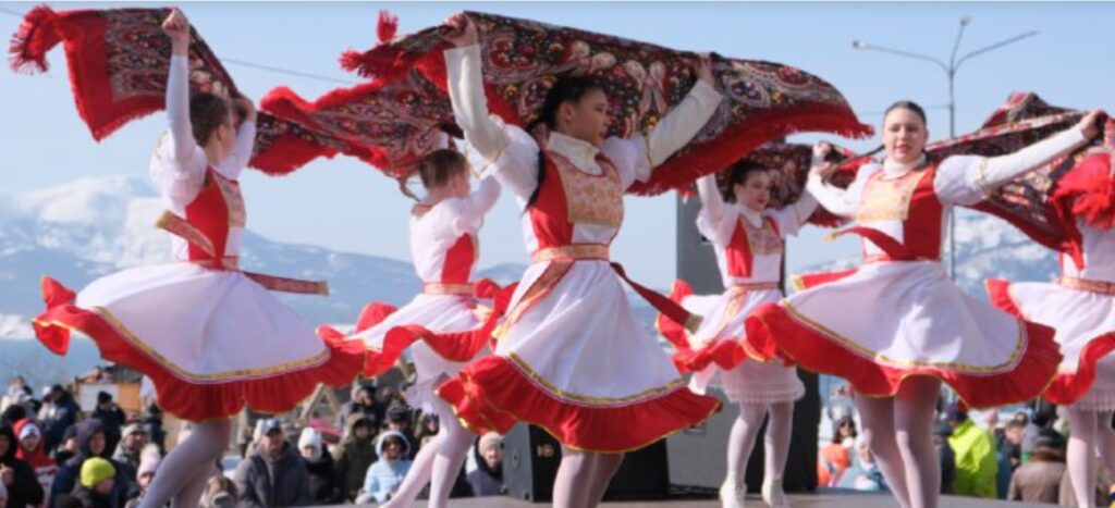 冬への別れと待ちに待った春の到来を祝うマースレニツァ週間は2月の最終日曜日(22日)に終了した。国後島ユジノクリリスク(古釜布)の地区コミュニティセンターの敷地内では、多彩なイベントが催された。地元のアマチュアパフォーマーたちが鮮やかなロシアの民族衣装に身を包み、ステージで活気あふれるロシア民謡やダンスを披露した。(南クリル地区行政府テレグラム2026/2/23)