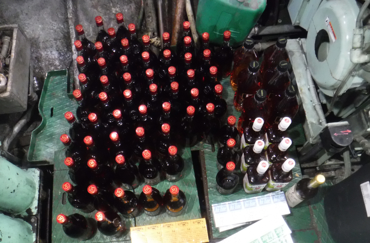 サハリン税関は国境警備隊と協力し、日本から国後島ユジノクリリスク港(古釜布)に到着した船舶で、申告されていないアルコール55リットルと物品税印紙のないタバコ60箱を発見した。船員が、日本製のウイスキー、リキュール、ブランデー、タバコ製品を潤滑油貯蔵タンクに隠していた。船員は故意に物品の申告を怠った。
