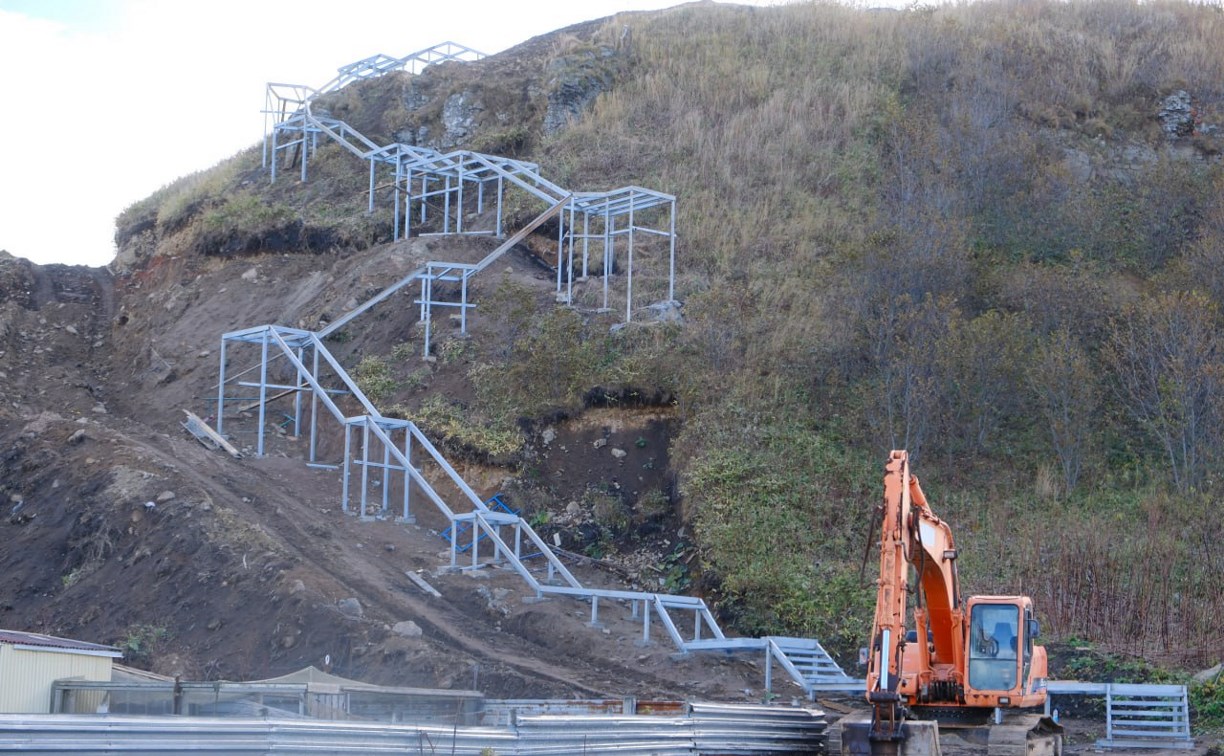 国後島ユジノクリリスク(古釜布)では、高台にある市街地と旧市街(戦前、日本人が住んでいた湾岸エリア)をつなぐ歩行者用階段「眠れる森の美女」建設プロジェクトが進行中だ。階段の下部出口はユジノクリリスカヤ湾(古釜布湾)岸に設置され、階段上部に設置される展望台からはメンデレーエフ火山(羅臼山)のパノラマビューを楽しむことが出来る。完成は年内の予定。