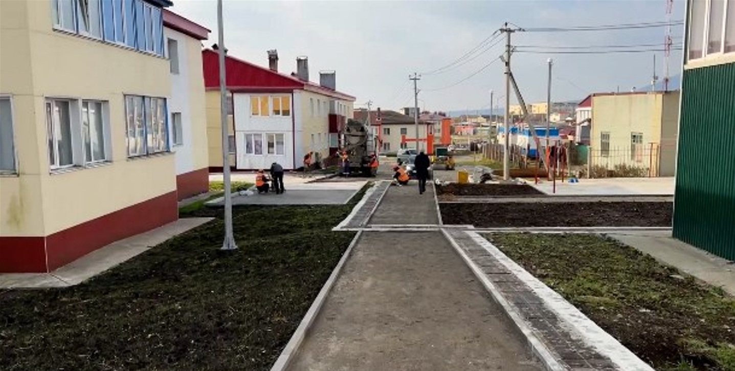 南クリル地区を実務訪問中のリマレンコ知事は国後島ユジノクリリスク(古釜布)の集合住宅の中庭と地下室の大規模改修工事の進捗状況を視察した。