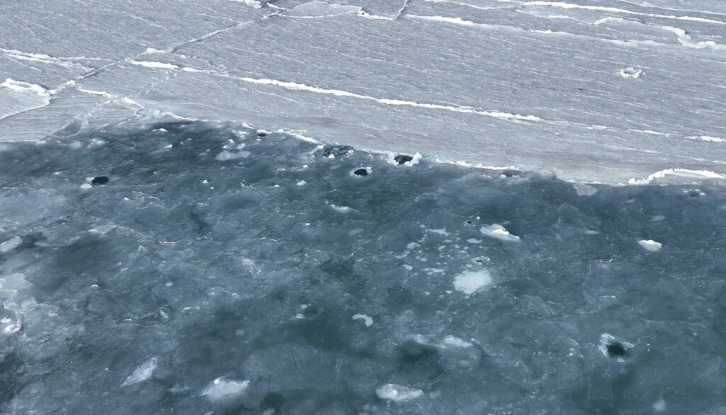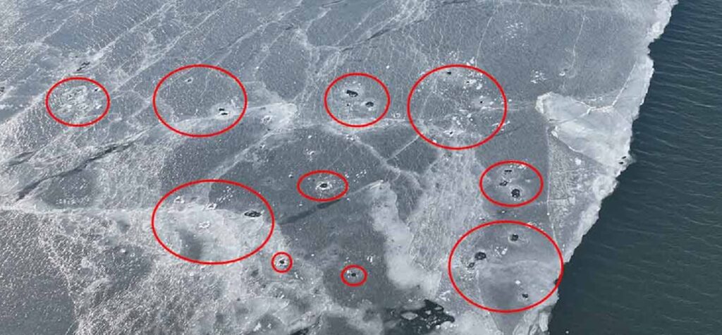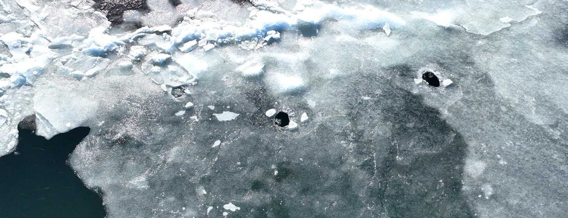 冬季、アザラシにとって空気は非常に重要だ。彼らは海面を覆った薄い氷を頭で割ったり、前ひれの爪で引っ掻いたりして穴を開ける。氷が発達して一枚岩の殻と化してしまうと、新たな穴を開けることはできなくなるため、アザラシは既存の「吸気穴」を常に監視し、凍結を防いでいる。