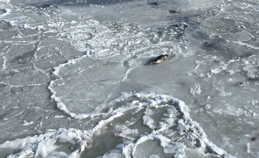 国後島のクリル自然保護区の職員が国後島南部のベスロフスキー半島(ケラムイ崎)沿岸の定期調査中、珍しいアザラシの「吸気穴」を発見した。氷に開いた整然とした丸い穴は、海洋哺乳類にとって「生命の窓」となり、冬季生存戦略の一部となっている。