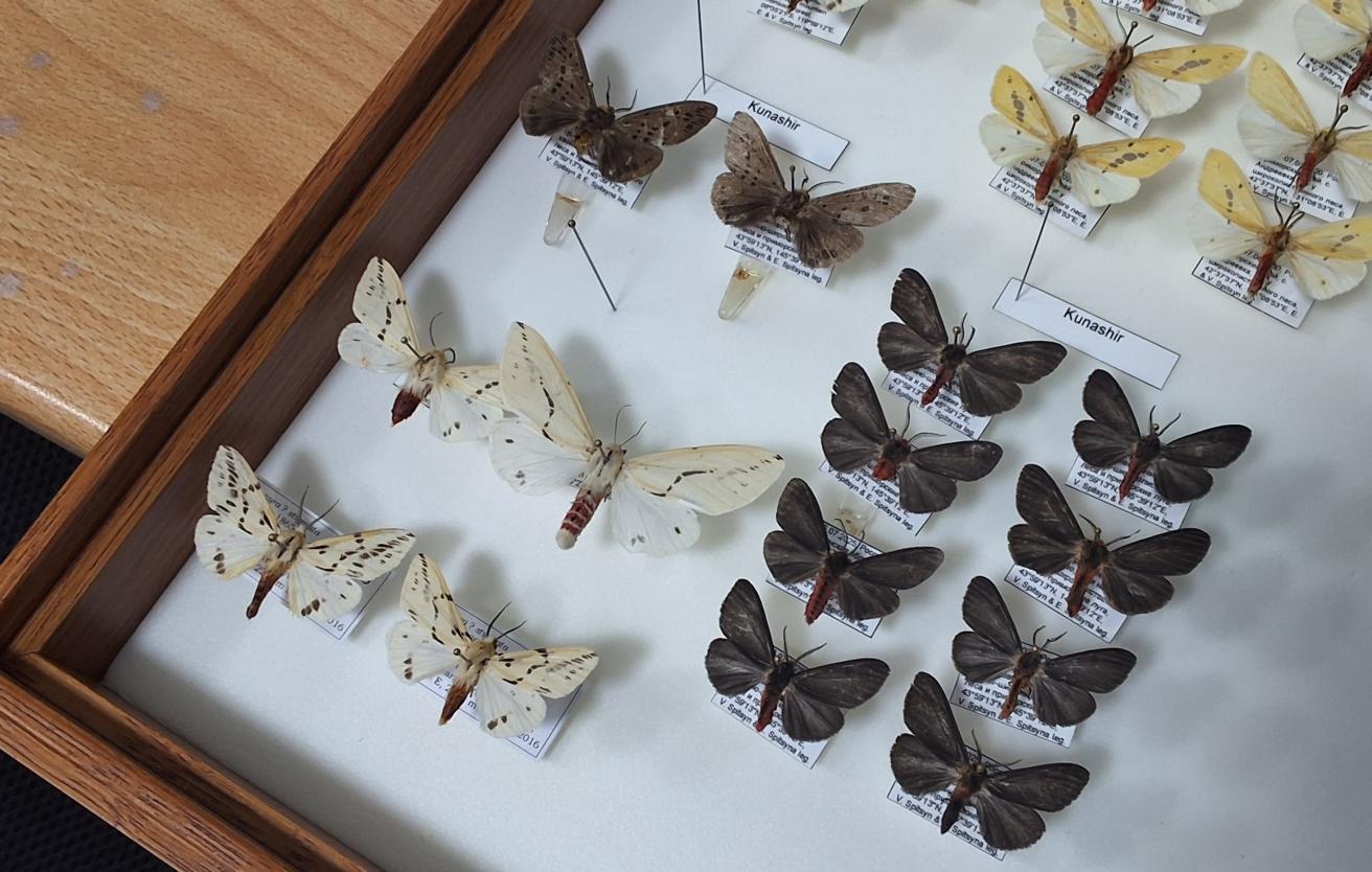 ロシア科学アカデミーウラル支部(FRICSA)N.P.ラヴェロフ連邦北極圏総合研究センター生物多様性センター博物館の上級研究員ヴィタリー・スピツィン氏によると、最近の調査では、国後島の動物相において新種となる蝶27種に加え、ロシア全土において新種となる4種の標本が収集された。チビクロアツバ(Chibidokuga hypenodes)と、クワゴマダラヒトリ(Lemyra imparilis)、クロバネヒトリ(Lemyra infernalis)、アカスジシロコケガ(Cyana hamate)の4種。これらの種の分布域は、国後島のほか日本、中国、朝鮮半島、そして東南アジアの一部地域に及ぶ。