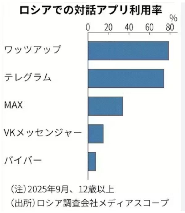 MAXや国産通信アプリはワッツアップやテレグラムと異なり、通信を管理するサーバーが露国内に置かれる。当局にとっては反政権的なやり取りなどの検閲や摘発などが容易になる。