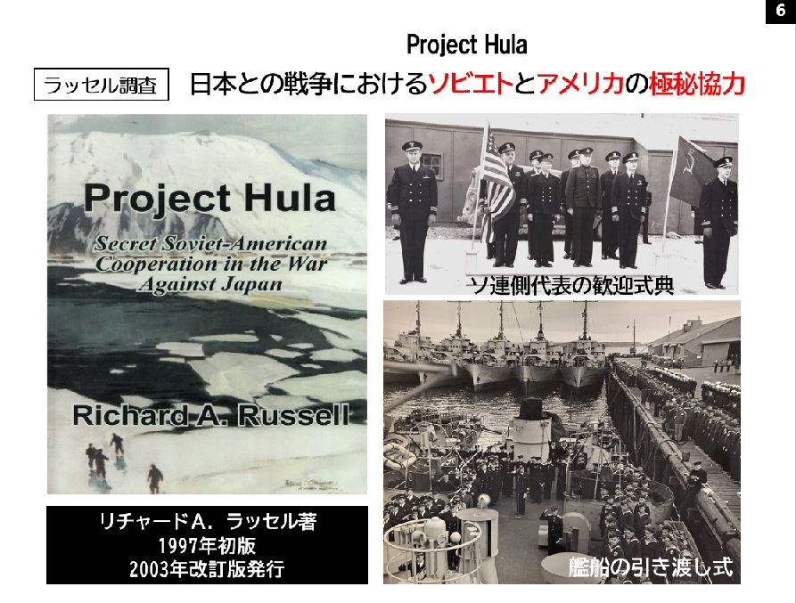 艦番号を手掛かりにインターネット検索でさらに調べていくと、米国で1997年に出版された「Project Hula 日本との戦争におけるソビエトとアメリカの極秘協力」という本にたどり着いた。著者は米海軍の元軍人で海軍歴史センター現代史部門の研究員だったリチャード・ラッセルだった。プロジェクト・フラの詳細とともに、米国からソ連に移管された145隻の艦船リストが掲載されており、サハリン州郷土博物館紀要にある17隻の船の艦番号と照合すると、そのうち10隻がプロジェクト・フラで米国から供与されたものと分かった。
