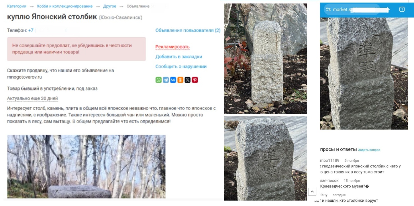 citysakh.ruは先日、インターネットの市場の一つで樺太時代の日本の遺物が売りに出されているニュースを報じたが、どうやら遺物に買い手がついたようだ。サハリンに住む匿名の男性が、漢字が書かれた測量柱を購入しようとしている。買い手は、柱、石、石板など、どんな日本の遺産でも構わず、碑文や絵が刻まれていることが重要だという。買い手は、売り手が指定した場所に自ら出向き、遺物を掘り起こす用意があるという。買い手が日本の遺物に関心を寄せた理由は不明だ。(citysakh.ru 2025/11/24)