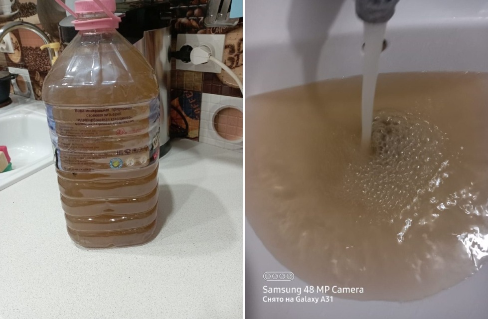 「色丹島と住宅・公共事業局の尊敬すべき責任者の皆様。この状況がいつまで続くのか、ご説明ください。マロクリリスコエ(斜古丹)ではいつまでこんな水が続くのでしょうか?」「服も子供も洗えない!」